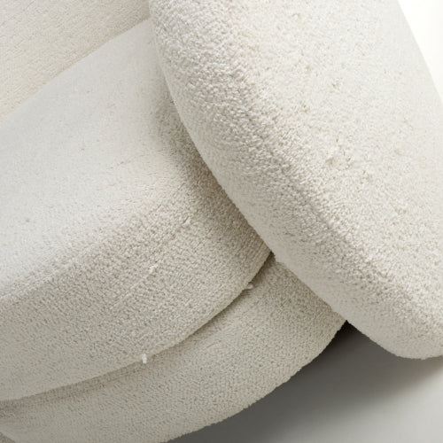 • Upholstered in vanilla white boucle fabric