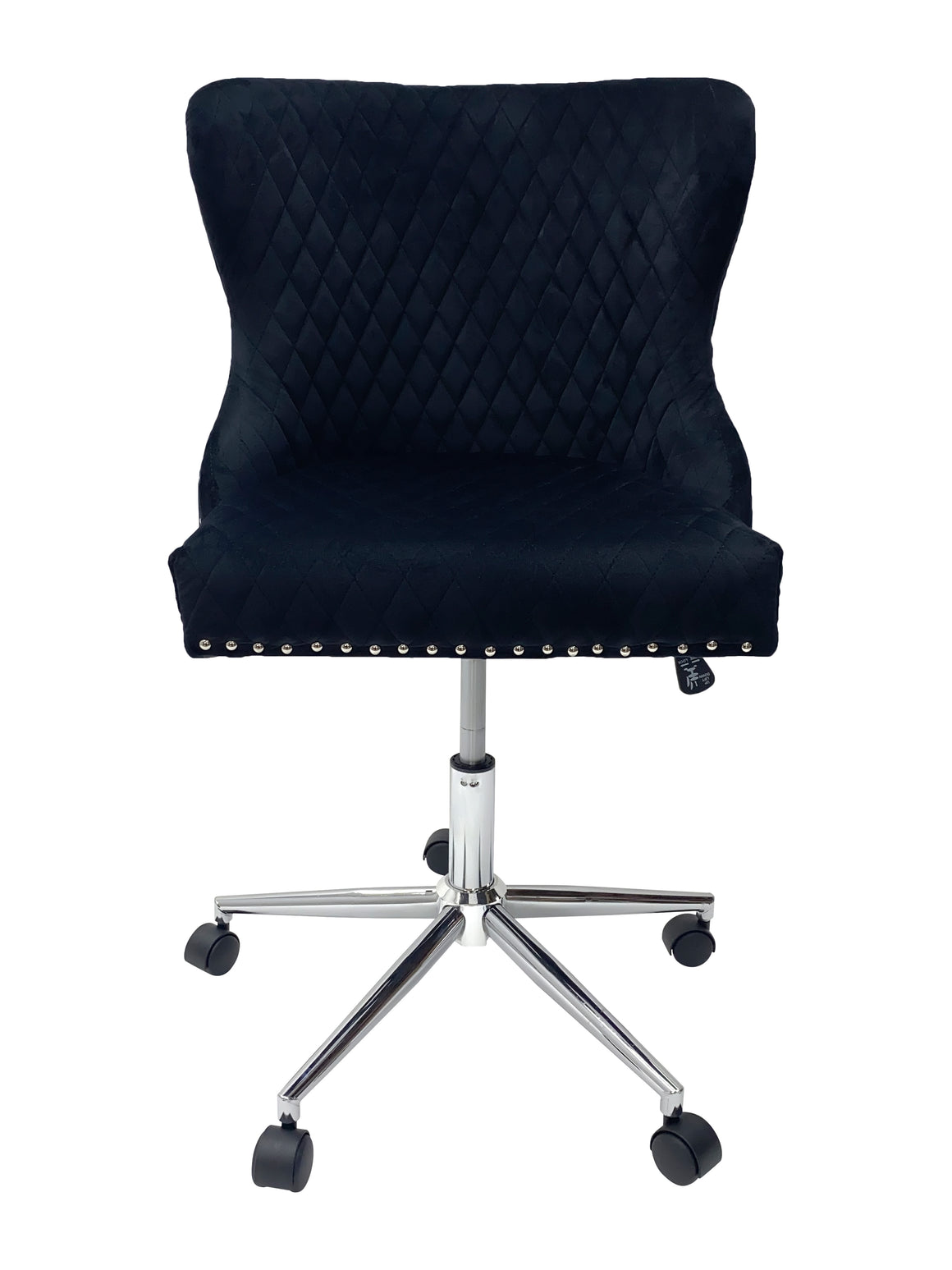 Bring a touch of Luxury to your home office or salon with this Carvello Napier Black Premium Upholstered Velvet Office Chair Tufted Back with Lion Head Knocker